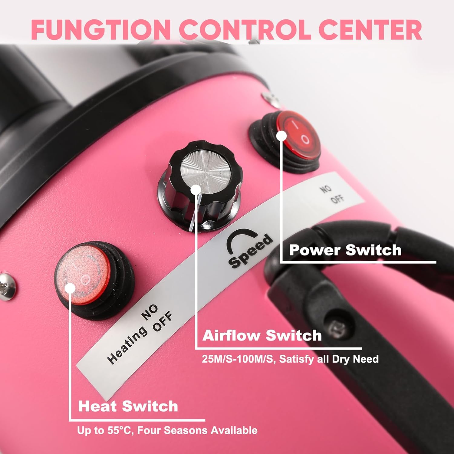 - Adjustable temperature and wind speed: the dog hair dryer offers infinitely different speeds and temperatures. You can choose between different wind strengths and temperatures depending on the size of your pet. Compared to conventional hand dog blow dryers, our dog blaster shortens the blow drying time. Dry your furry friend easily after showering.
