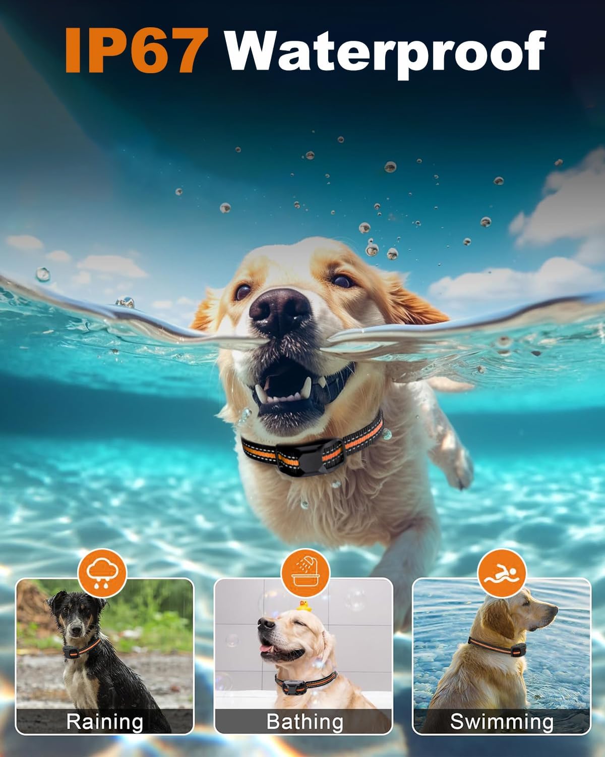 - 【IP67 Waterproof for All-Weather Use】No need to worry about water! Our dog training collar features an IP67 waterproof receiver, making it perfect for rain, puddles, and even playful swims. Designed to withstand all conditions, this collar is ideal for active dogs who love the outdoors. Just secure the charging port cover, and let your pet enjoy training sessions in any weather—rain or shine!