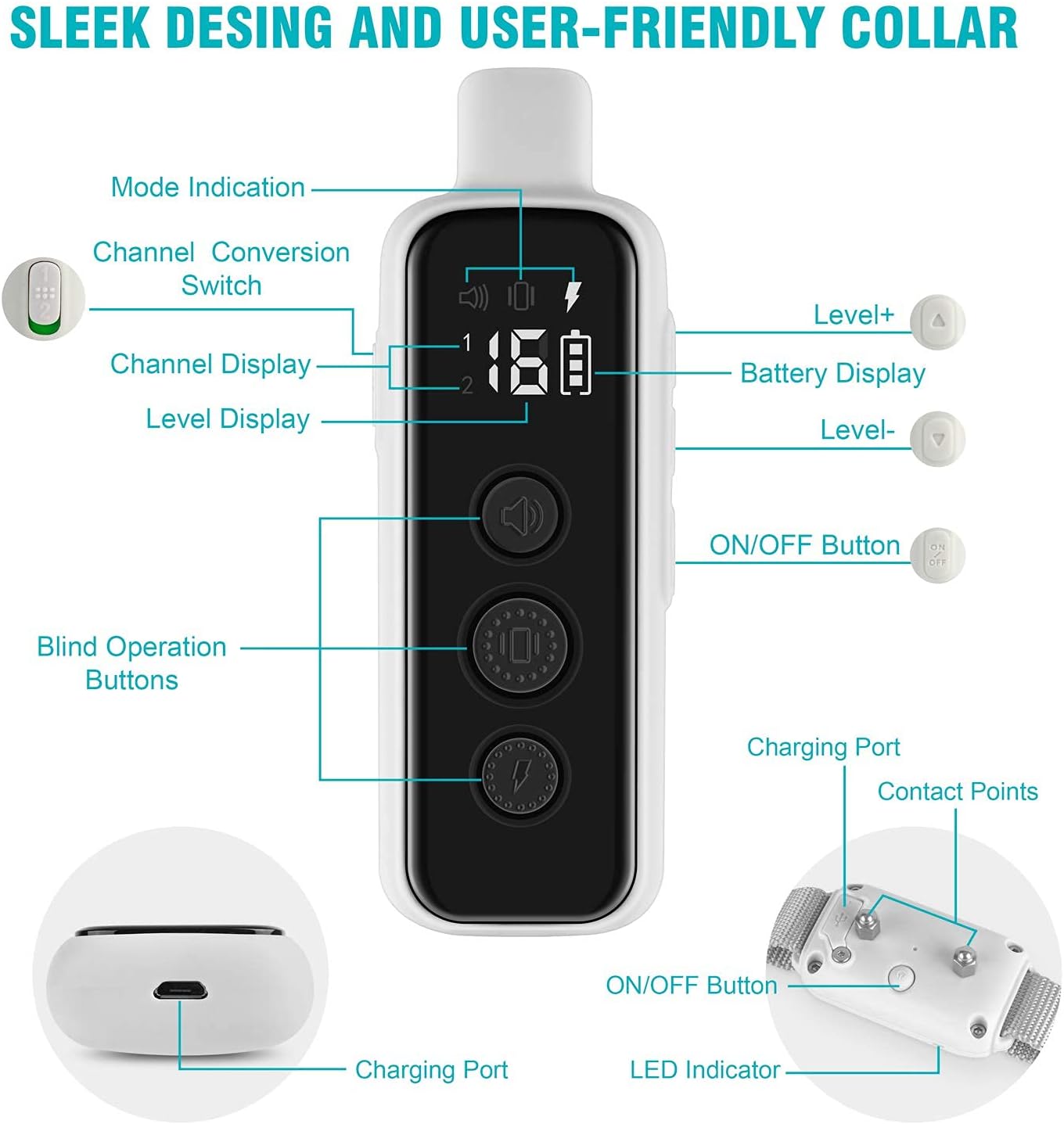 Bousnic Shock Collar for Dogs - Waterproof Rechargeable Dog Electric Training Collar with Remote for Small Medium Large Dogs with Beep, Vibration, Safe Shock Modes (8-120 Lbs)