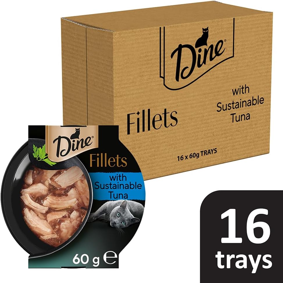 DINE Filets Wet Cat Food with Sustainable Tuna 16 x 60g Trays