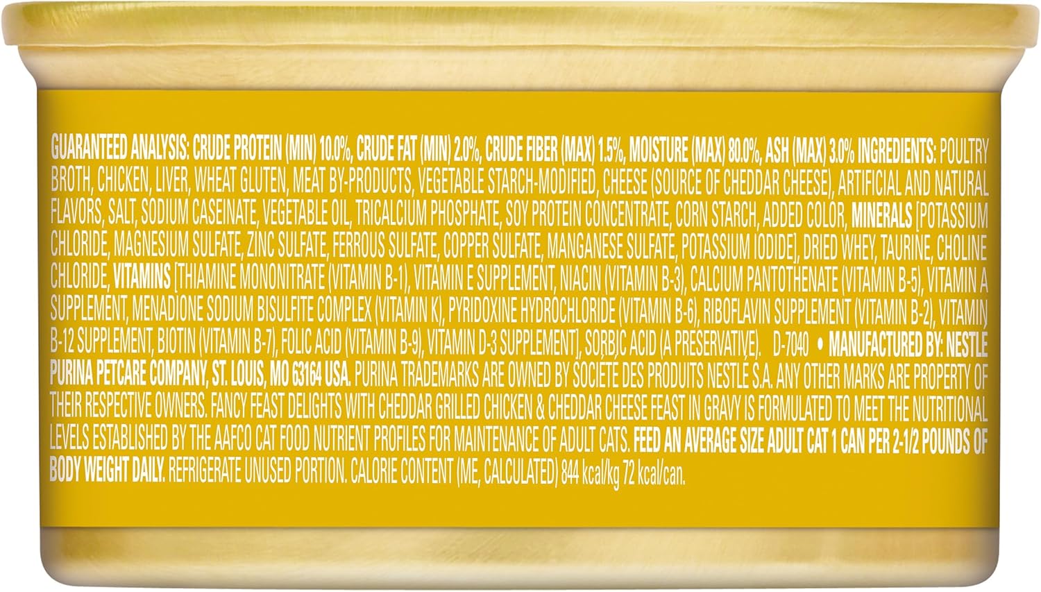 FANCY FEAST Delights With Cheddar Adult Wet Cat Food Grilled Chicken & Cheddar Cheese Feast in Gravy 24x85g
