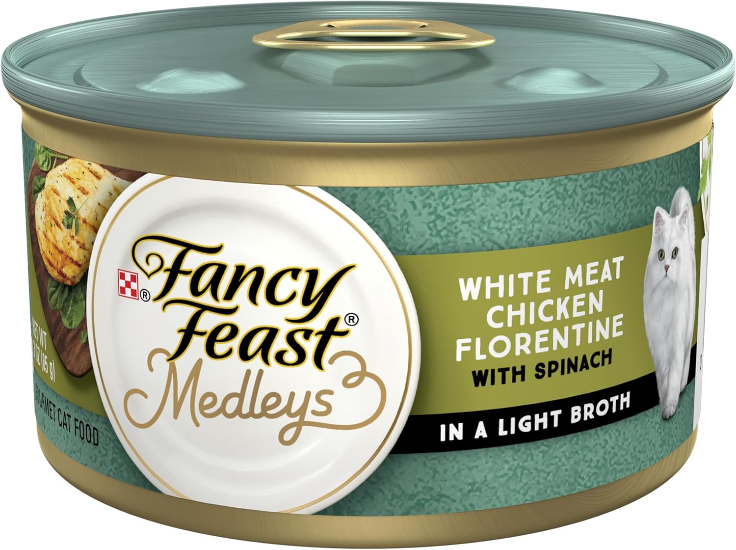 Fancy Feast Medleys Adult Wet Cat Food White Meat Chicken Florentine with Garden Greens in Sauce 24x85g