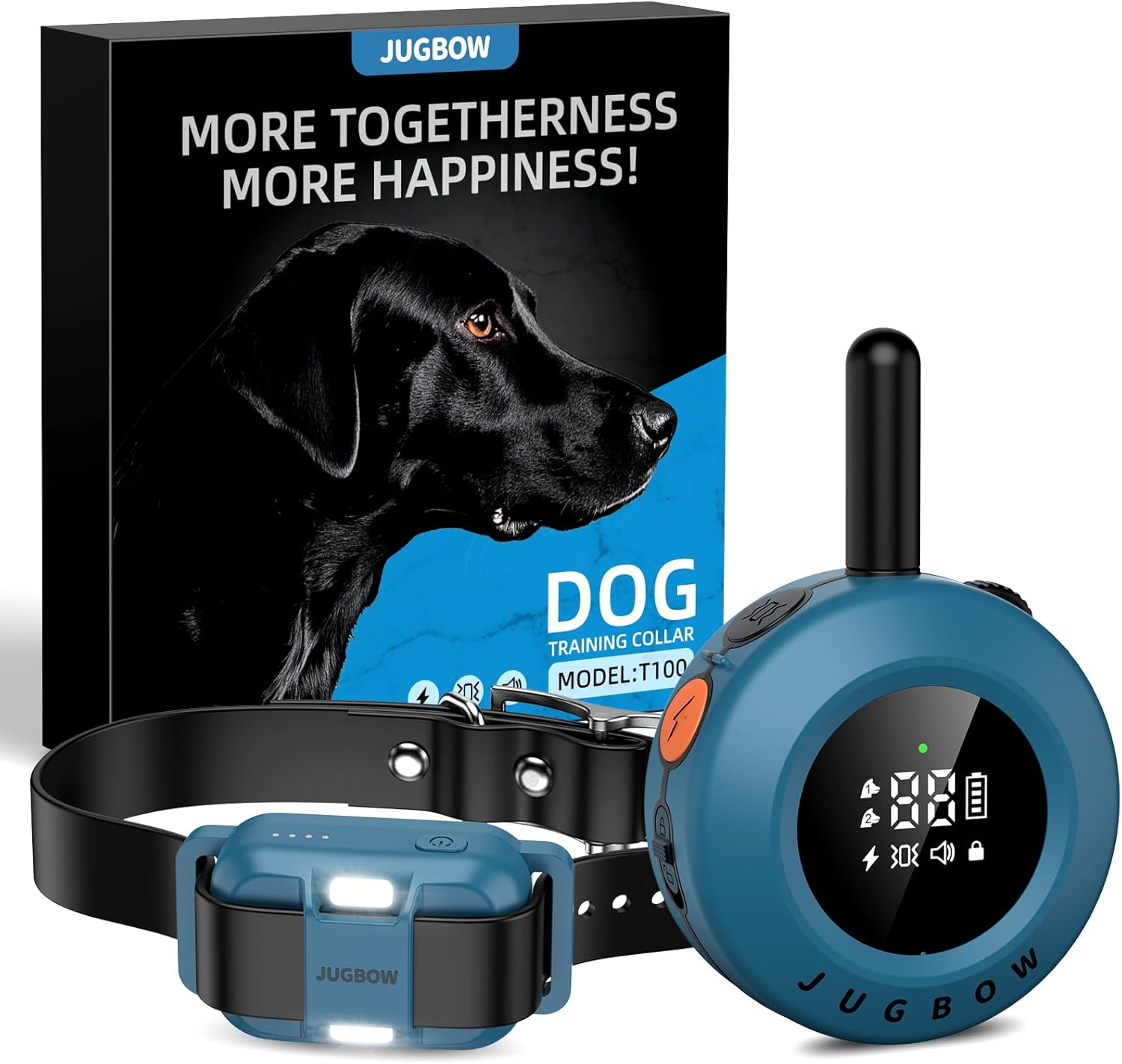 Jugbow Dog Training Collar - 3/4 Mile Remote Dog Collar with 3 Training Modes, Electric Collars with LED Light & Security Lock, IPX8 Waterproof Rechargeable E-Collar for Large Medium Small Dogs (Blue)