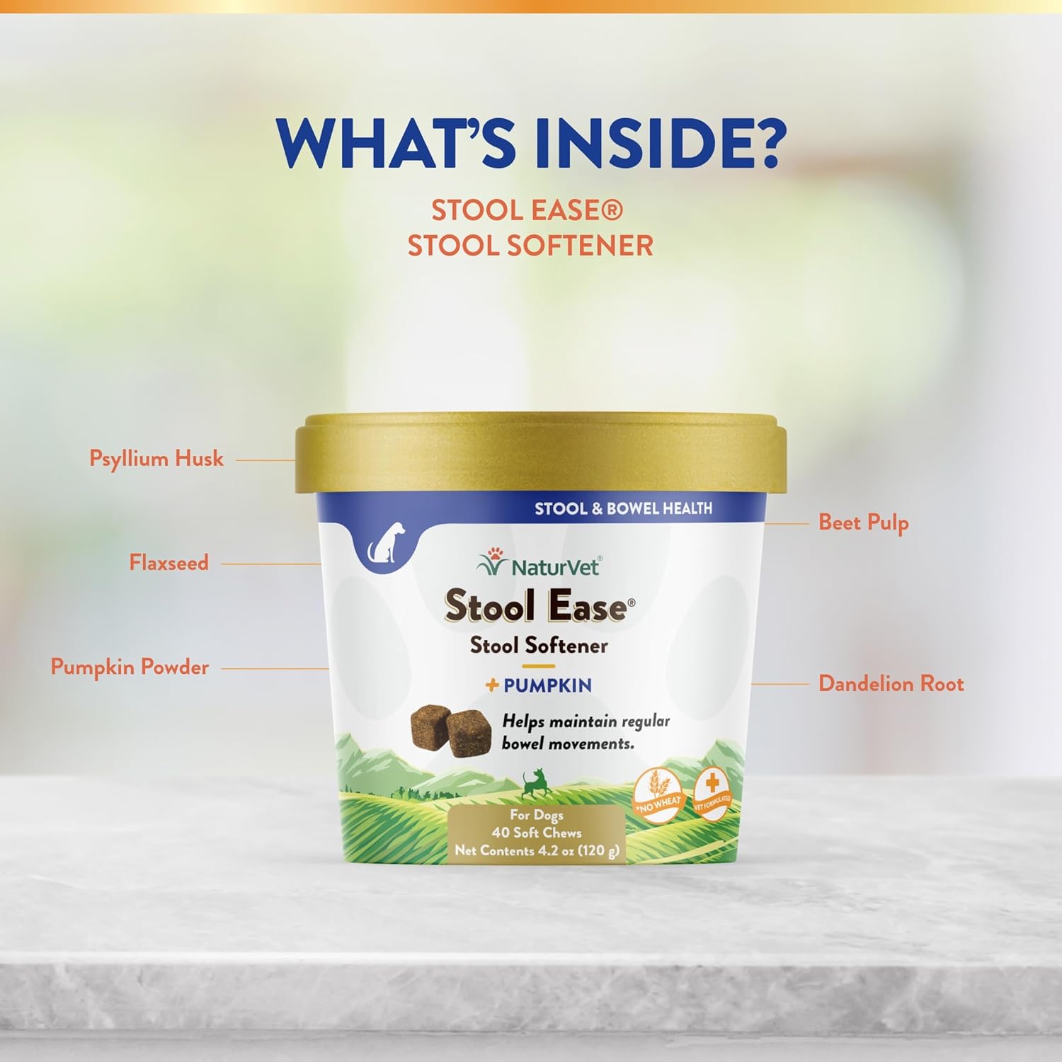 NaturVet Stool Ease Stool Softener for Dogs, 40 ct Soft Chews, Made in USA