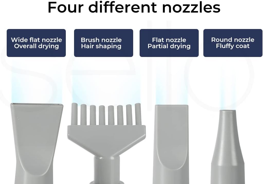 - 🌟Four Different Nozzles: Wide flat nozzles for full drying, brush nozzles for styling, flat nozzles for partial drying, grinding nozzles for fluffy hair, your dog will love the dog grooming hair dryer you have prepared for them.