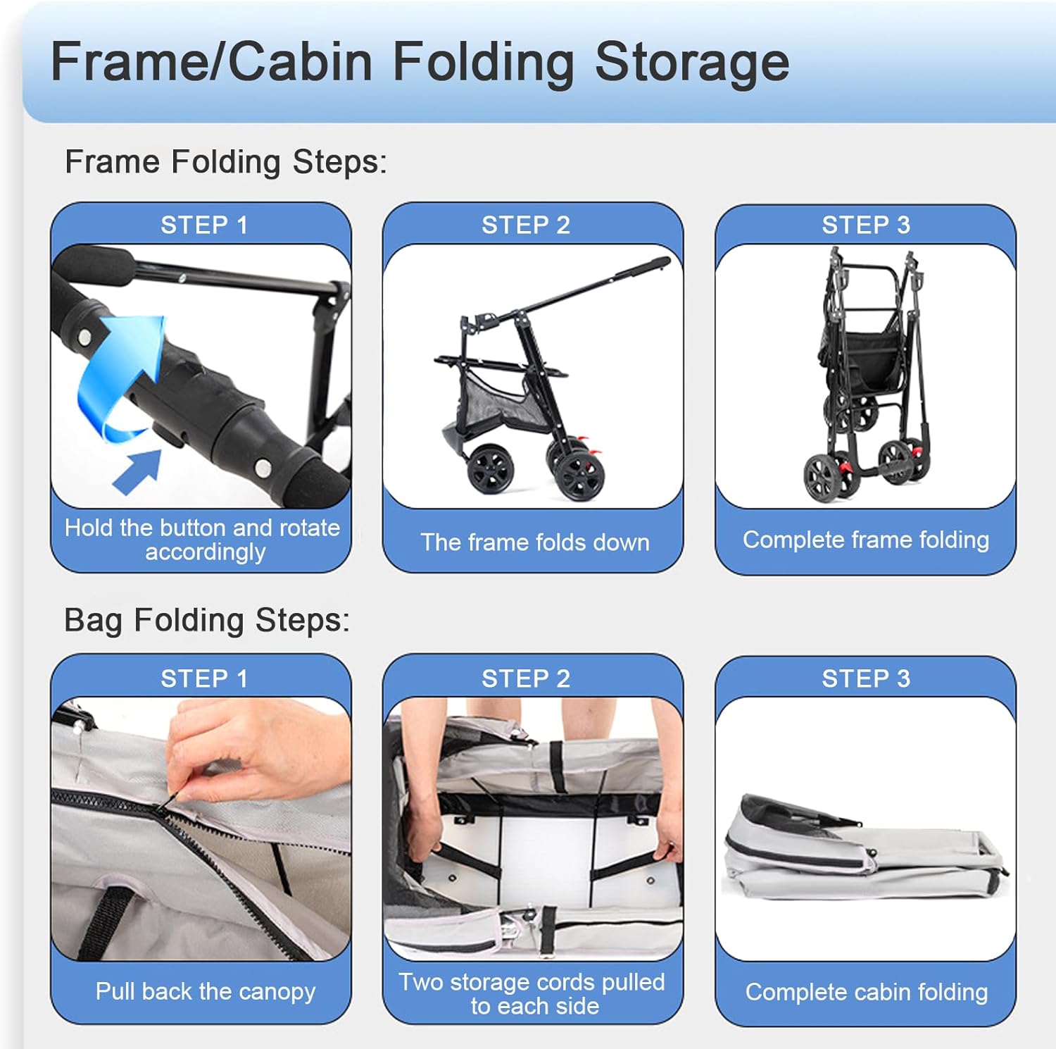 - Easy Assembly and Folding: This pet stroller is designed for convenience, with a straightforward assembly process that takes just a few minutes. Simply follow the included manual, and you’ll have it ready to use in no time. When you’re done, it folds up effortlessly with a one-hand fold mechanism, making it easy to store in your car trunk or carry with you. Whether you're running errands or strolling in the park, this stroller is both practical and stylish