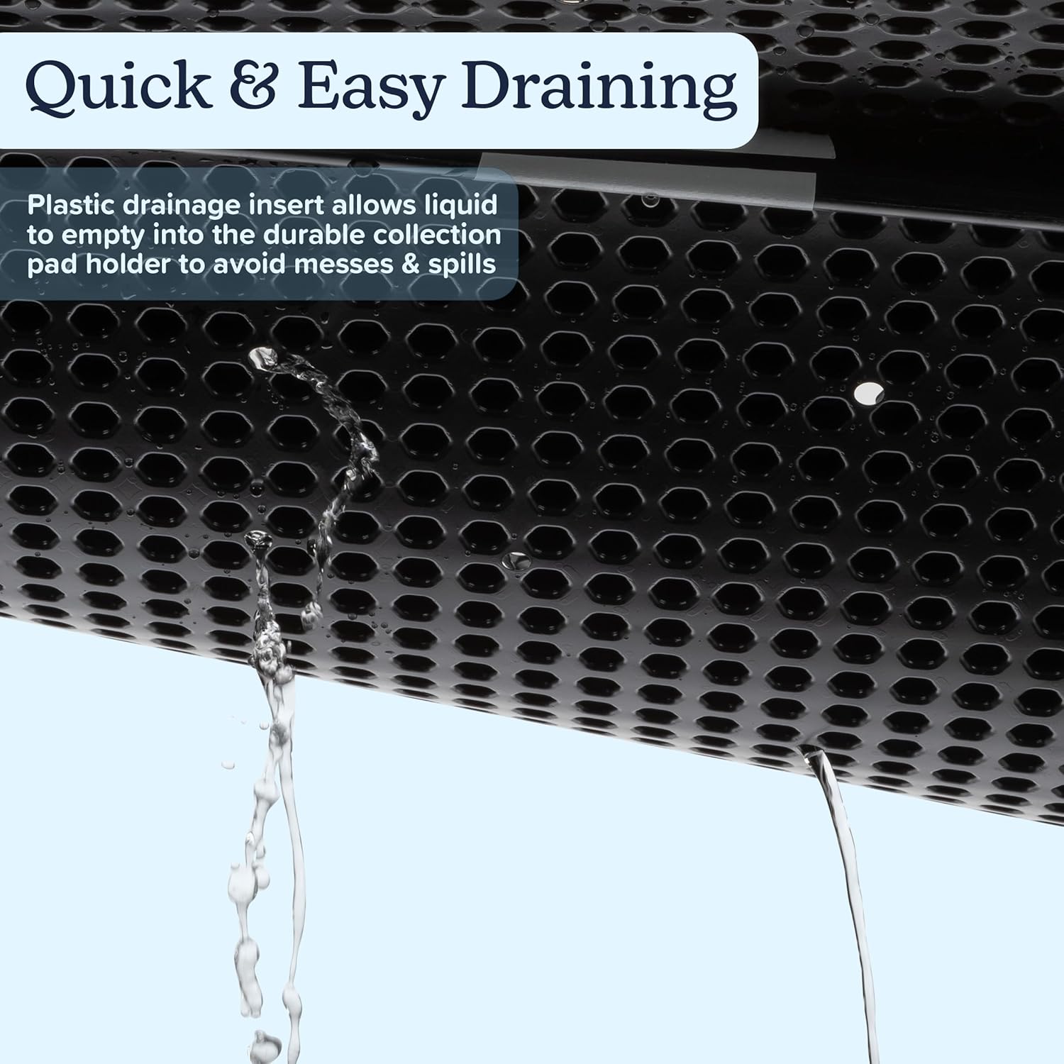 - FOUR-LAYER SYSTEM - The artificial dog grass mat sits on top of an odor-resistant cloth mat and a secure plastic drainage insert that allows liquid to empty into the durable collection puppy pad holder to avoid messes and spills.