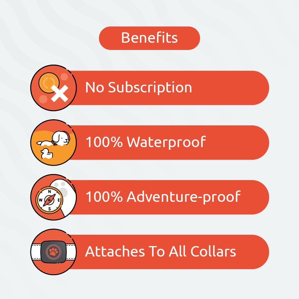 - Fits any dog and collar/harness. Super-robust, feather-light, comfortable and fully-waterproof.