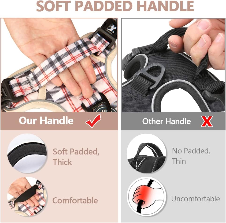 PoyPet No Pull Dog Harness, No Choke Reflective Oxford Outdoor Vest (Checkered Beige,S)