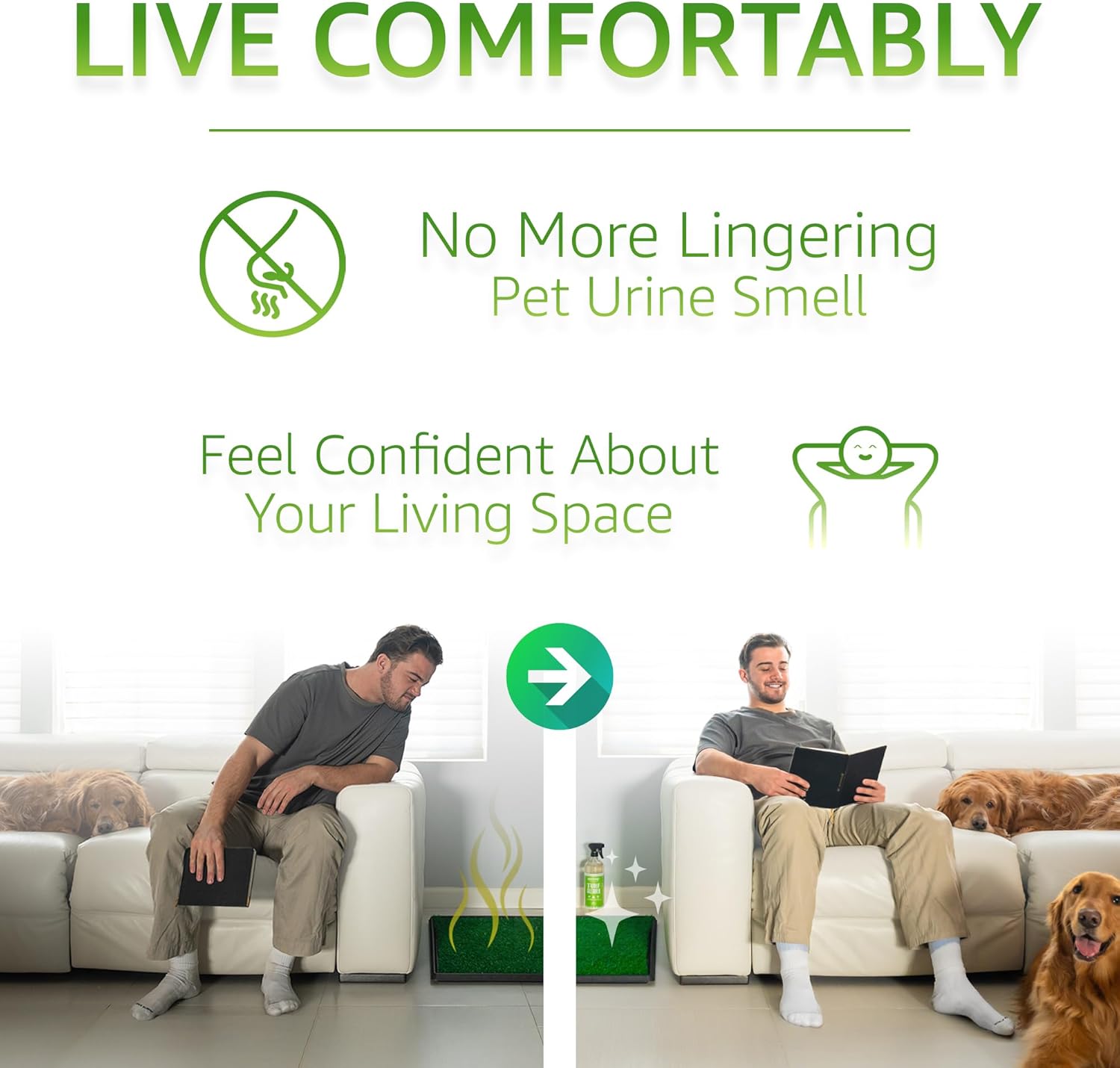 - Works on All Pet Urine, Feces, Vomit, and more! 🐶 💩 - Looking for a turf deodorizer for dogs? You've came to the right spot! Our Turf Cleaner is formulated to work on any fake grass rug.