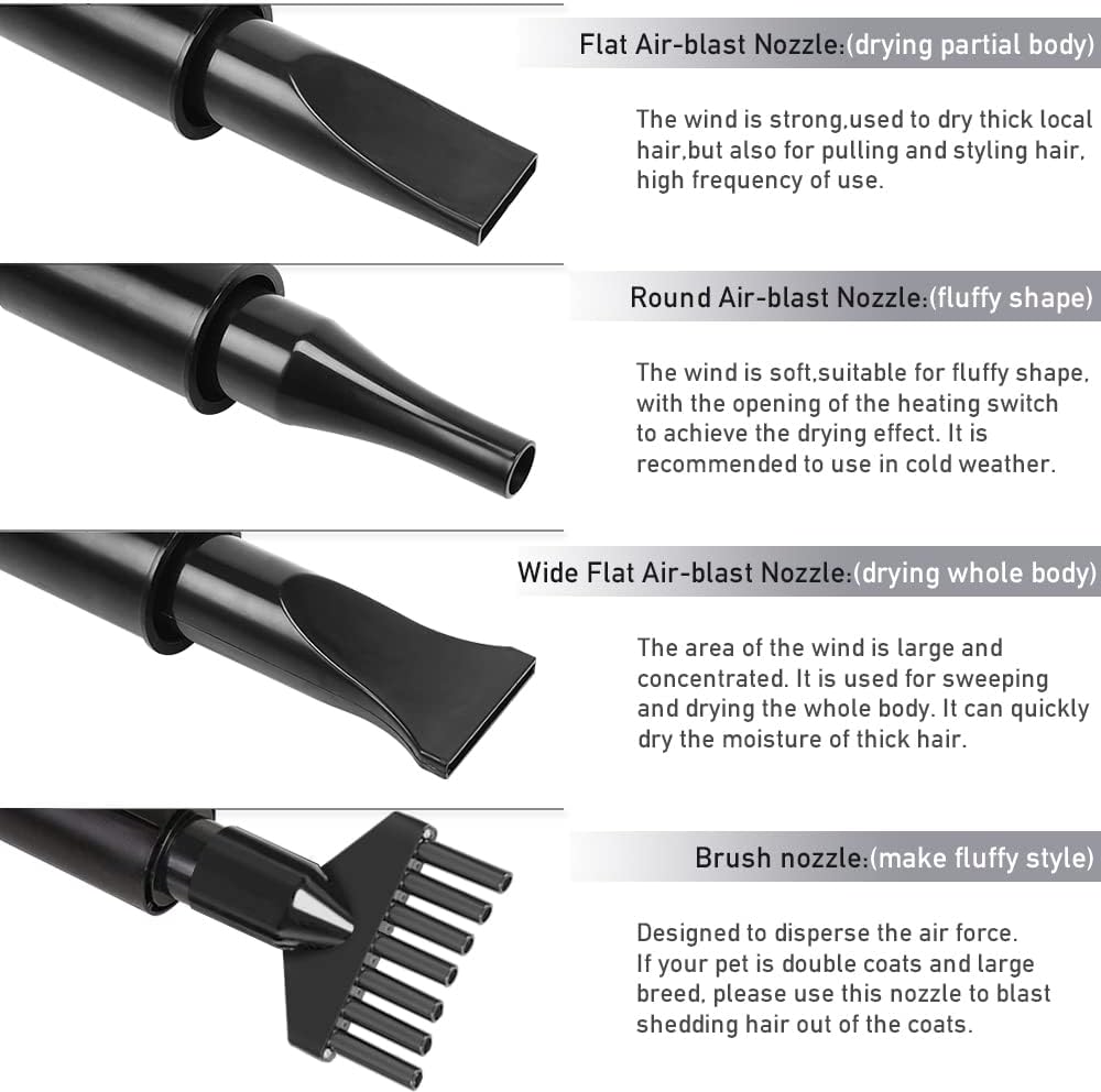 - 3. Versatile and User-Friendly Design: Designed with convenience in mind, this pet dryer features a compact size and a convenient handle, making it easy to maneuver and store. The adjustable hose and four different air vents with unique functions enable thorough and effective drying of your pet's fur, reaching every inch to ensure they stay comfortable and dry.
